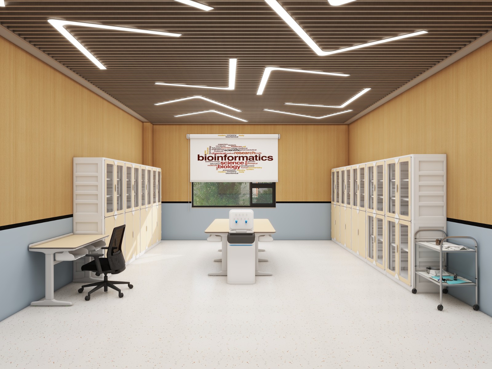生物準(zhǔn)備室是為生物老師和實(shí)驗(yàn)員準(zhǔn)備實(shí)驗(yàn)和驚醒實(shí)驗(yàn)教學(xué)研究的場(chǎng)所,配備有儀器儲(chǔ)藏區(qū)、實(shí)驗(yàn)準(zhǔn)備區(qū)、標(biāo)本展示區(qū)及配套的水電、防火與急救套。