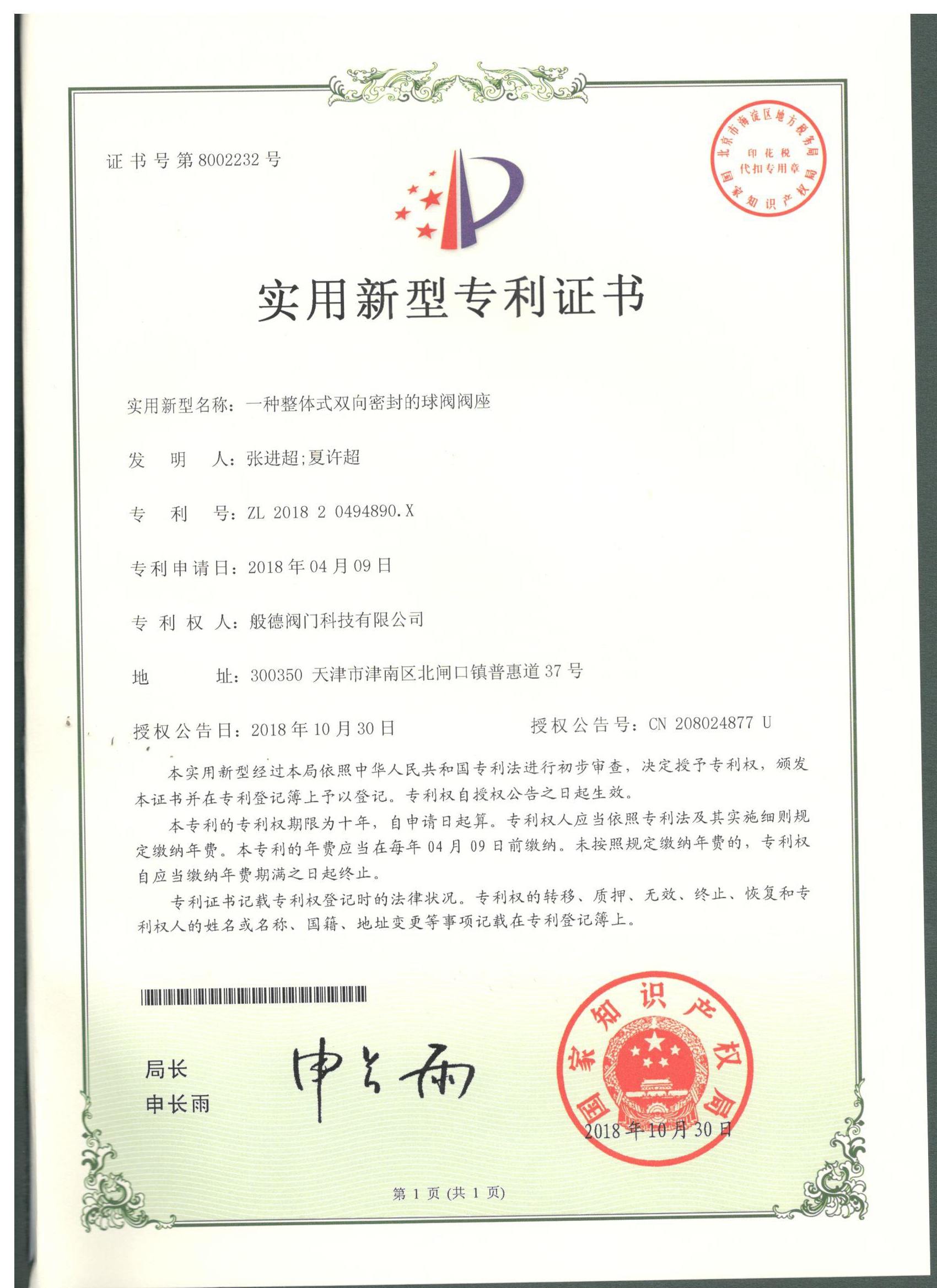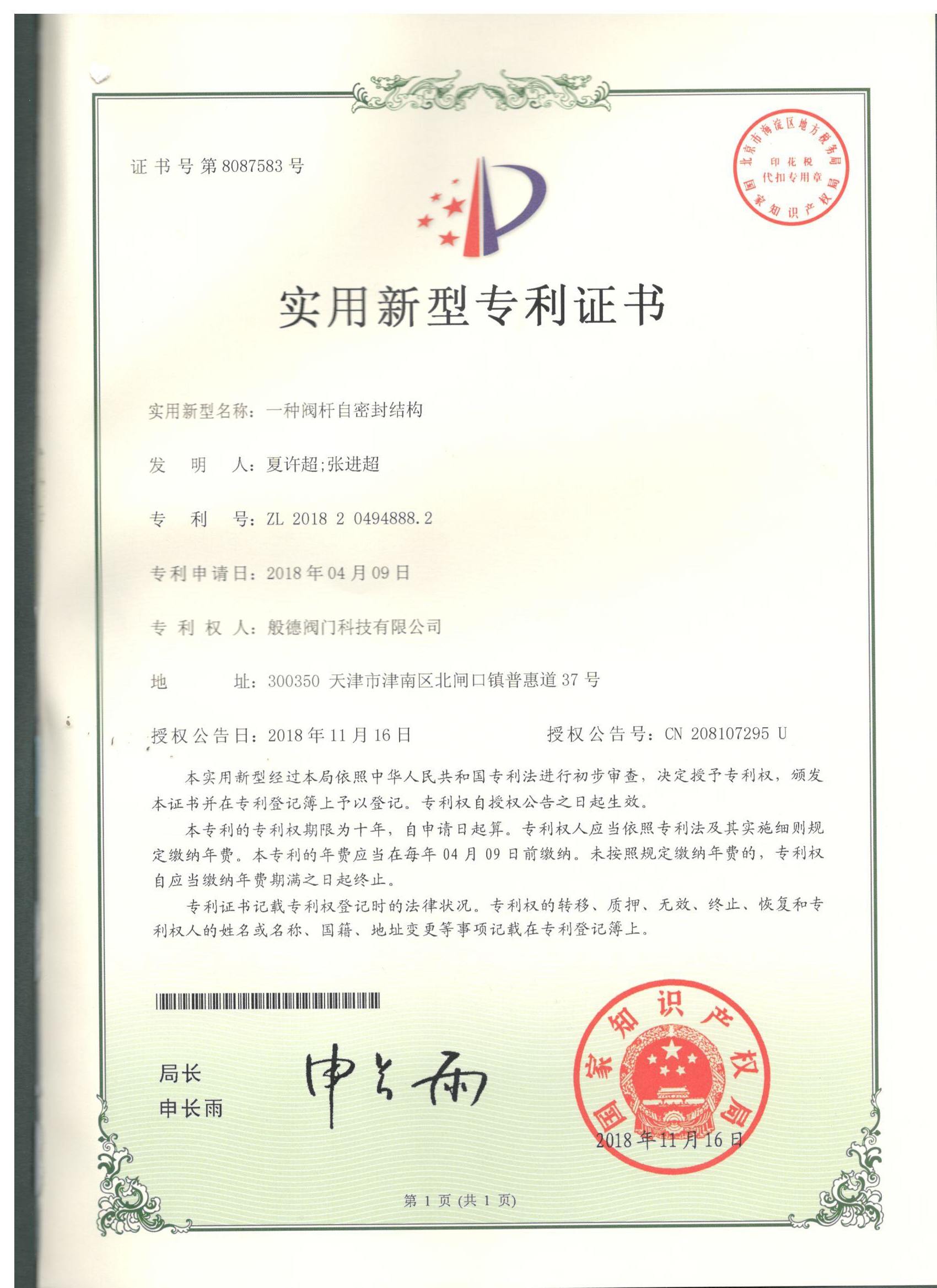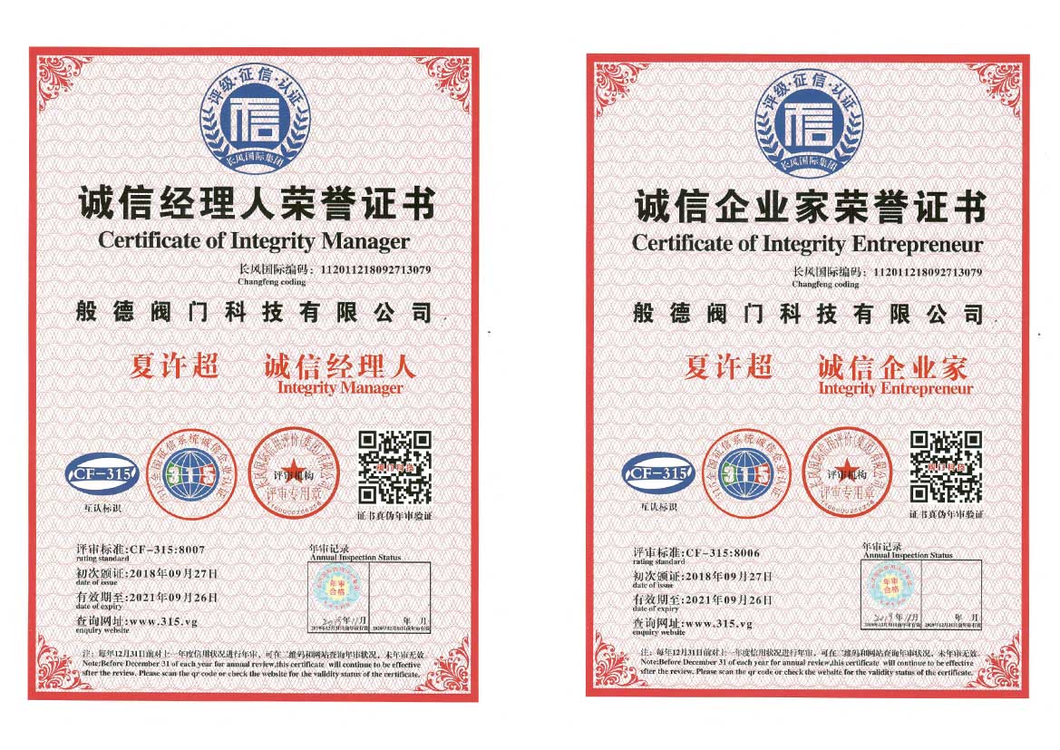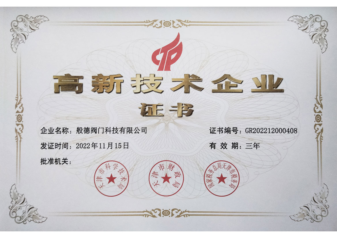 - 般德閥門 高新技術(shù)企業(yè)證書>>查看證書