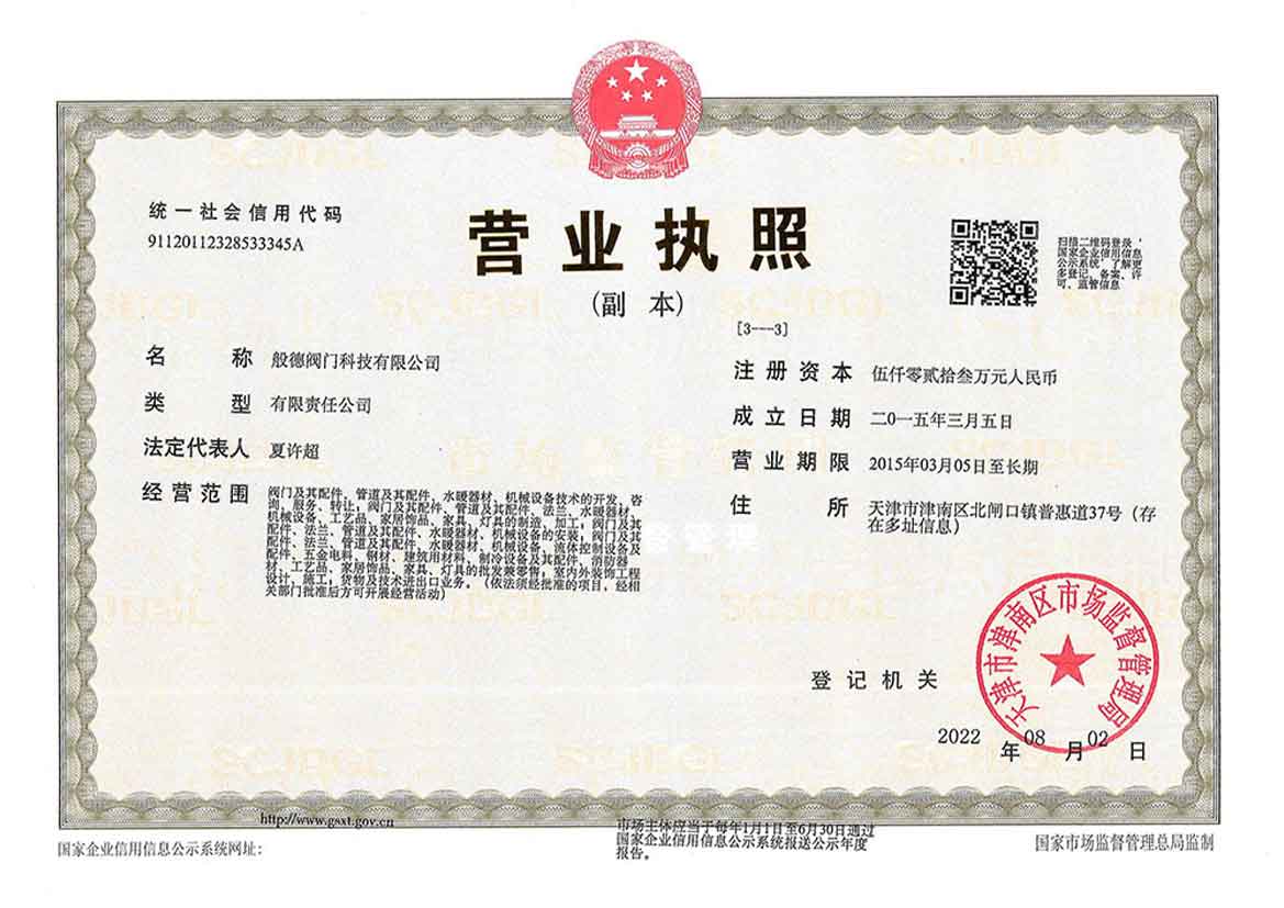 - 般德閥門 營(yíng)業(yè)執(zhí)照>>查看證書