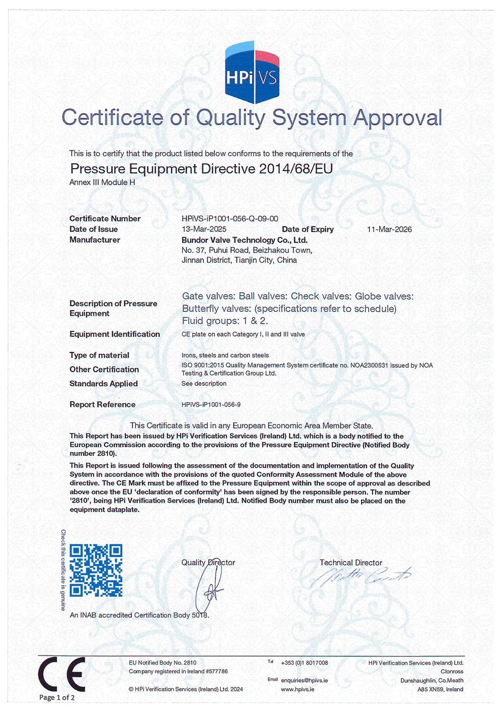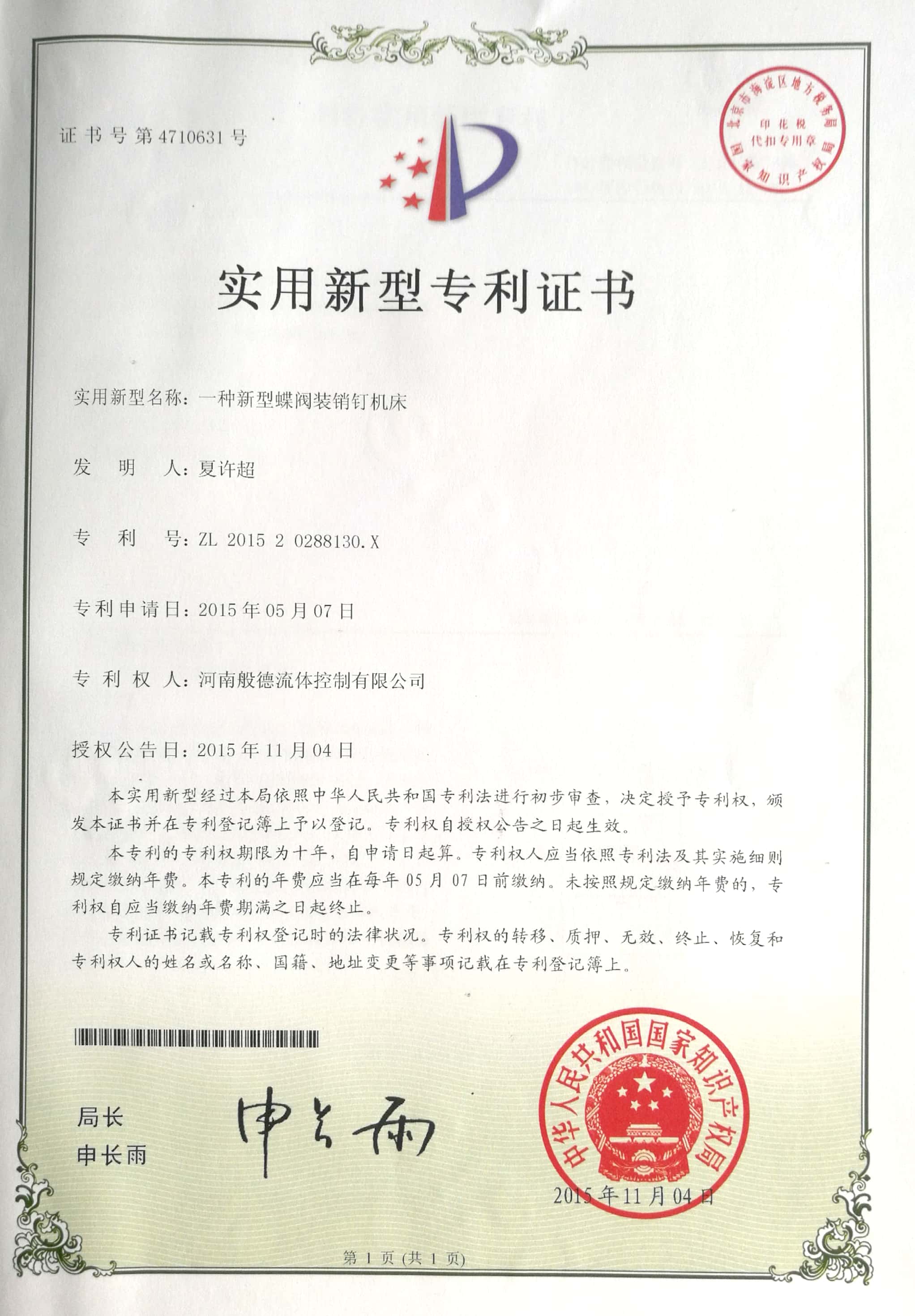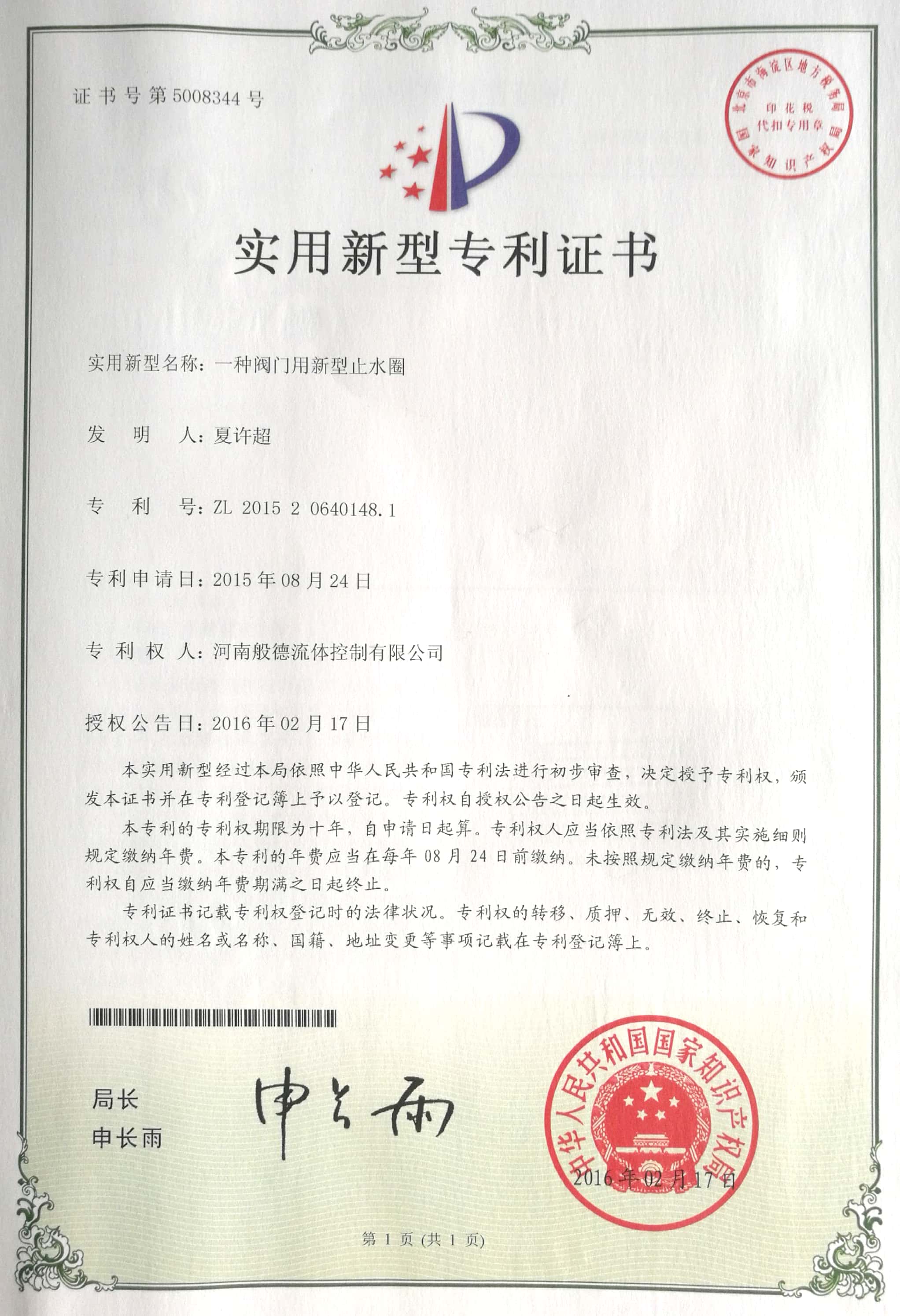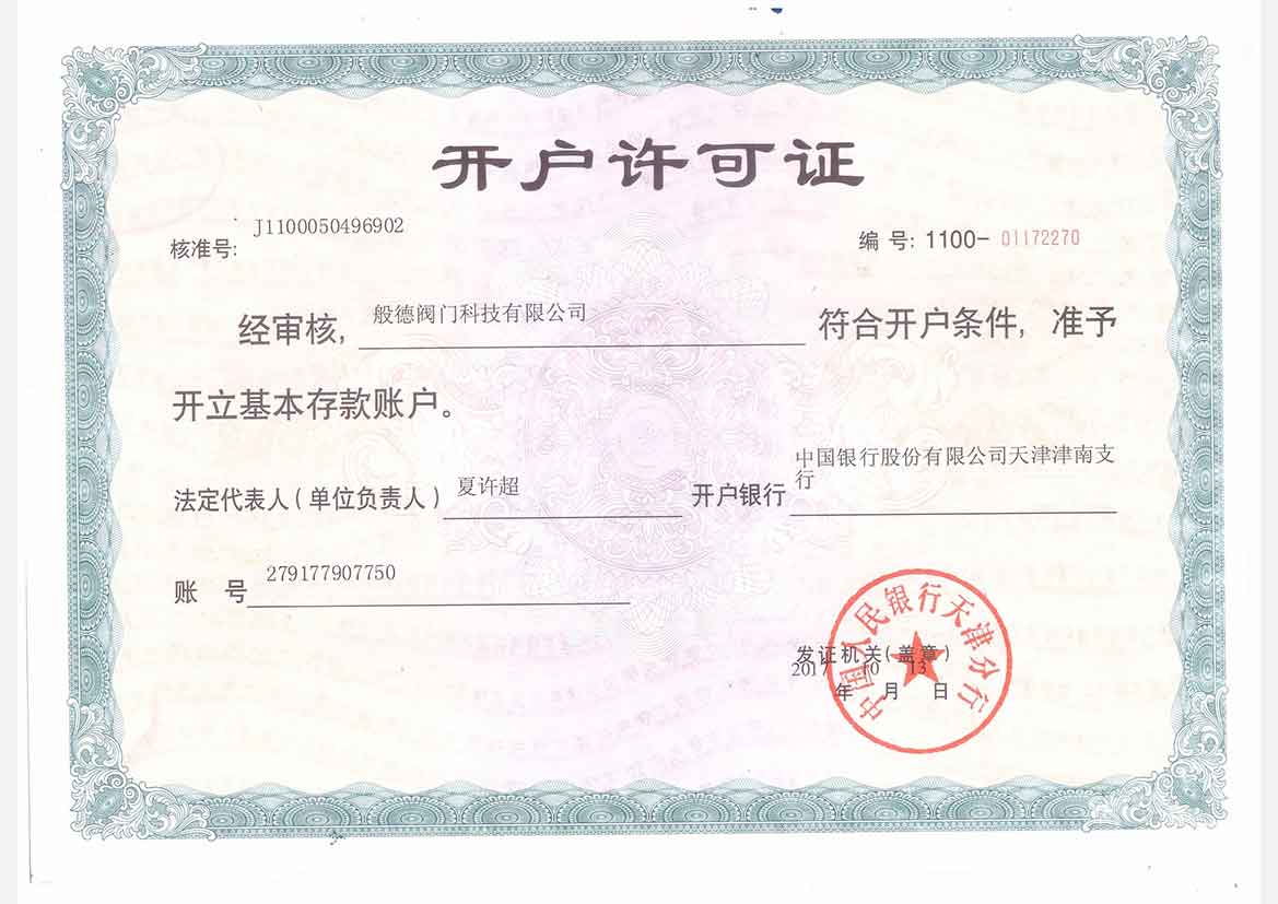 - 般德閥門 開戶許可證>>查看證書