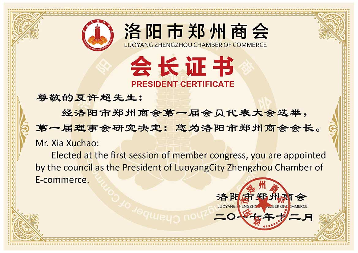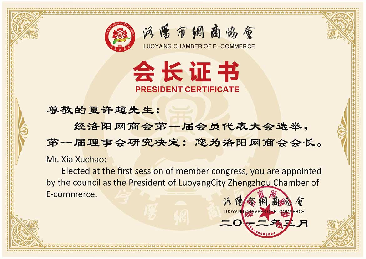 - 洛陽市網(wǎng)商會(huì)會(huì)長(zhǎng)>>查看證書