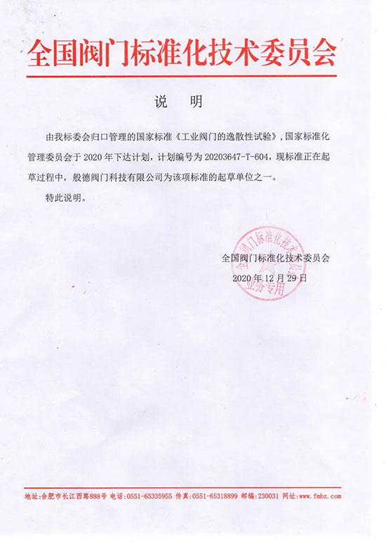 圖|般德閥門是《工業(yè)閥門的逸散性試驗》標準的起草單位之一
