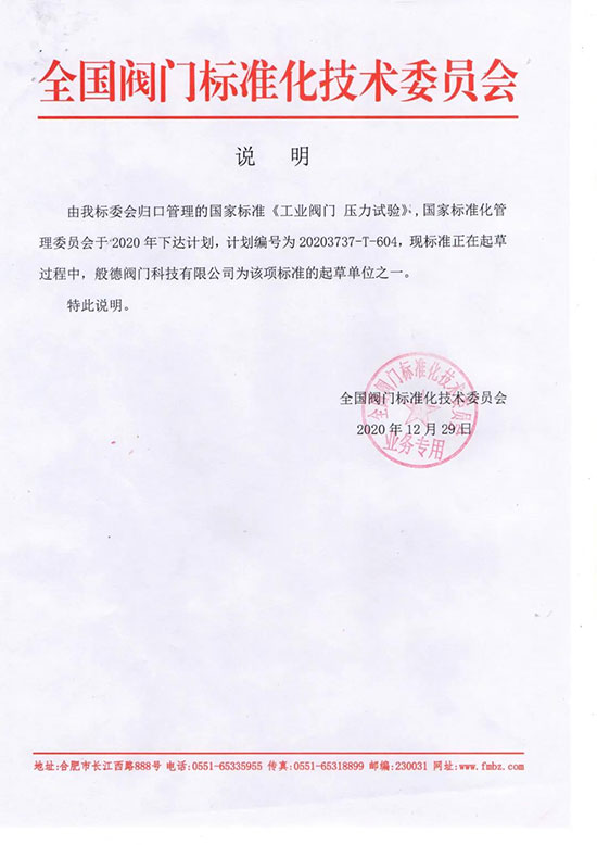 圖|般德閥門是《工業(yè)閥門 壓力試驗》標準的起草單位之一