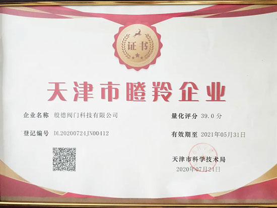 般德閥門榮獲“天津市瞪羚企業(yè)”。